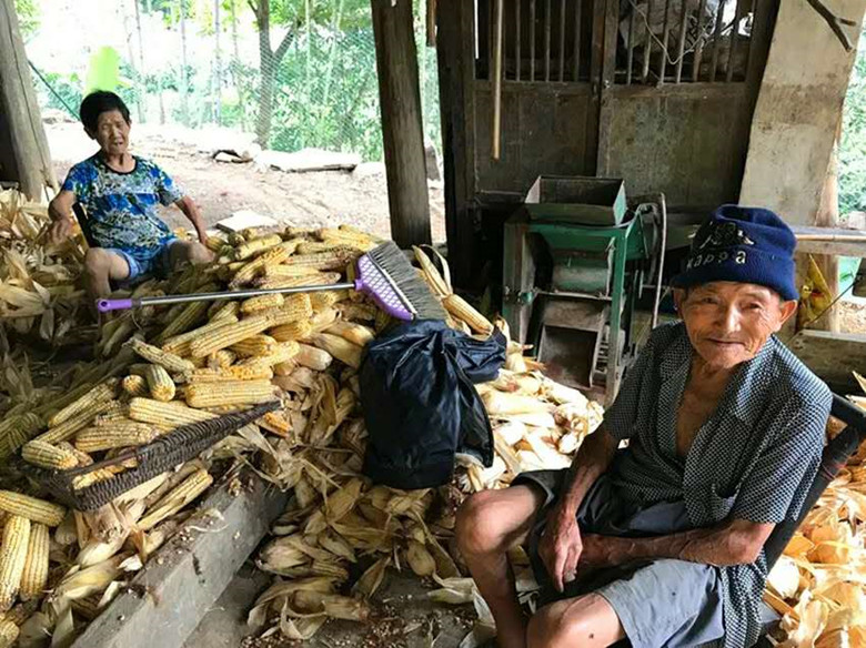兩人的父母都是80多歲的老人了。見到兩位老人時(shí),兩人正在一間破敗的房子里用手剝著玉米。