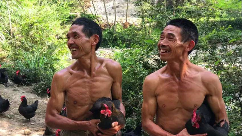 每到夏天,這對(duì)兄弟總是喜歡打著赤膊勞作,上身都曬成了古銅色,看上去身體還不錯(cuò)。